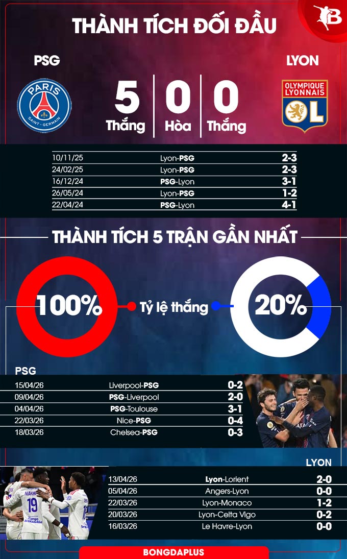 Khi mùa giải chỉ còn 5 vòng đấu, lợi thế đang nghiêng rõ rệt về phía PSG. Đội bóng của HLV Luis Enrique không chỉ hơn điểm mà còn thi đấu ít hơn Lens 1 trận, trong bối cảnh đối thủ cạnh tranh trực tiếp có dấu hiệu sa sút. Tái hiện hình ảnh của năm 2025, PSG đang đạt phong độ cao với chuỗi 6 chiến thắng liên tiếp trên mọi đấu trường trước khi bước vào cuộc đối đầu với Lyon.