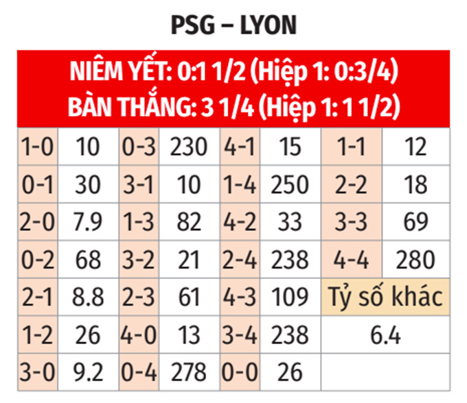 Khi ĐKVĐ Ligue 1 PSG chạy nước rút để về đích, khó có đội bóng nào có thể cản được họ. Với tương quan lực lượng, phong độ và đối đầu, thì đây sẽ là một trận thắng đậm của PSG trước “mồi ngon” Lyon.
